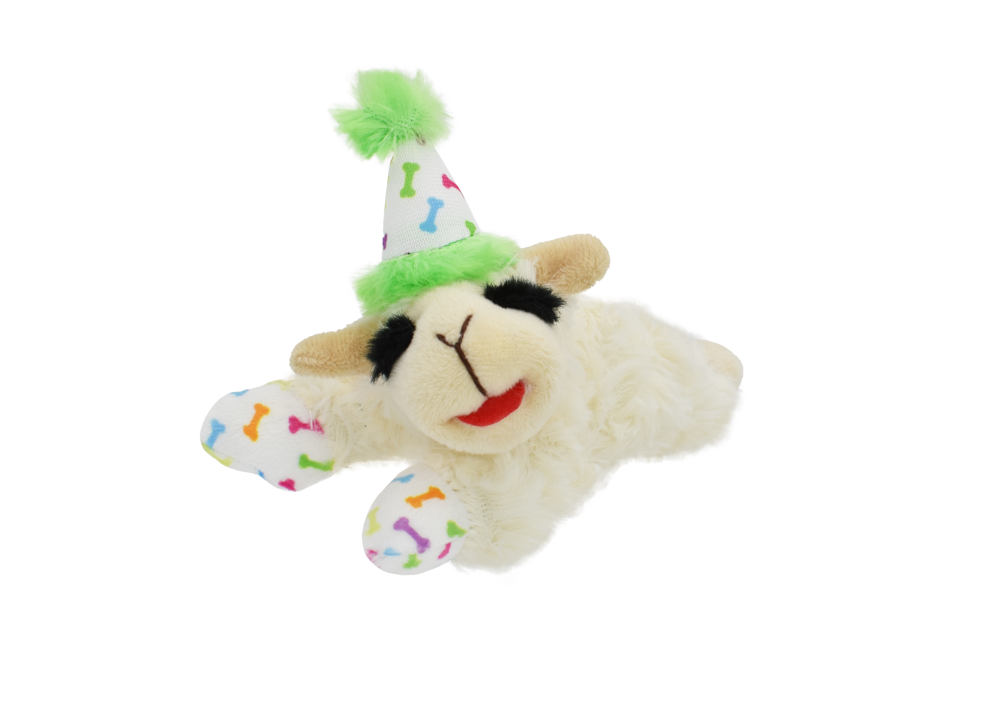 Green Birthday Lamb Chop Plush Dog Toy 10.5"