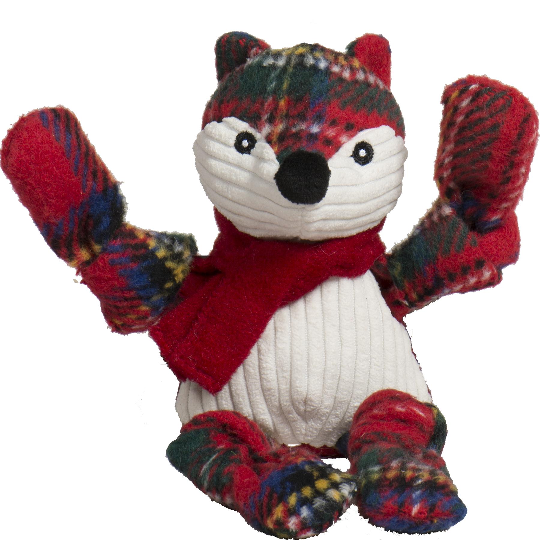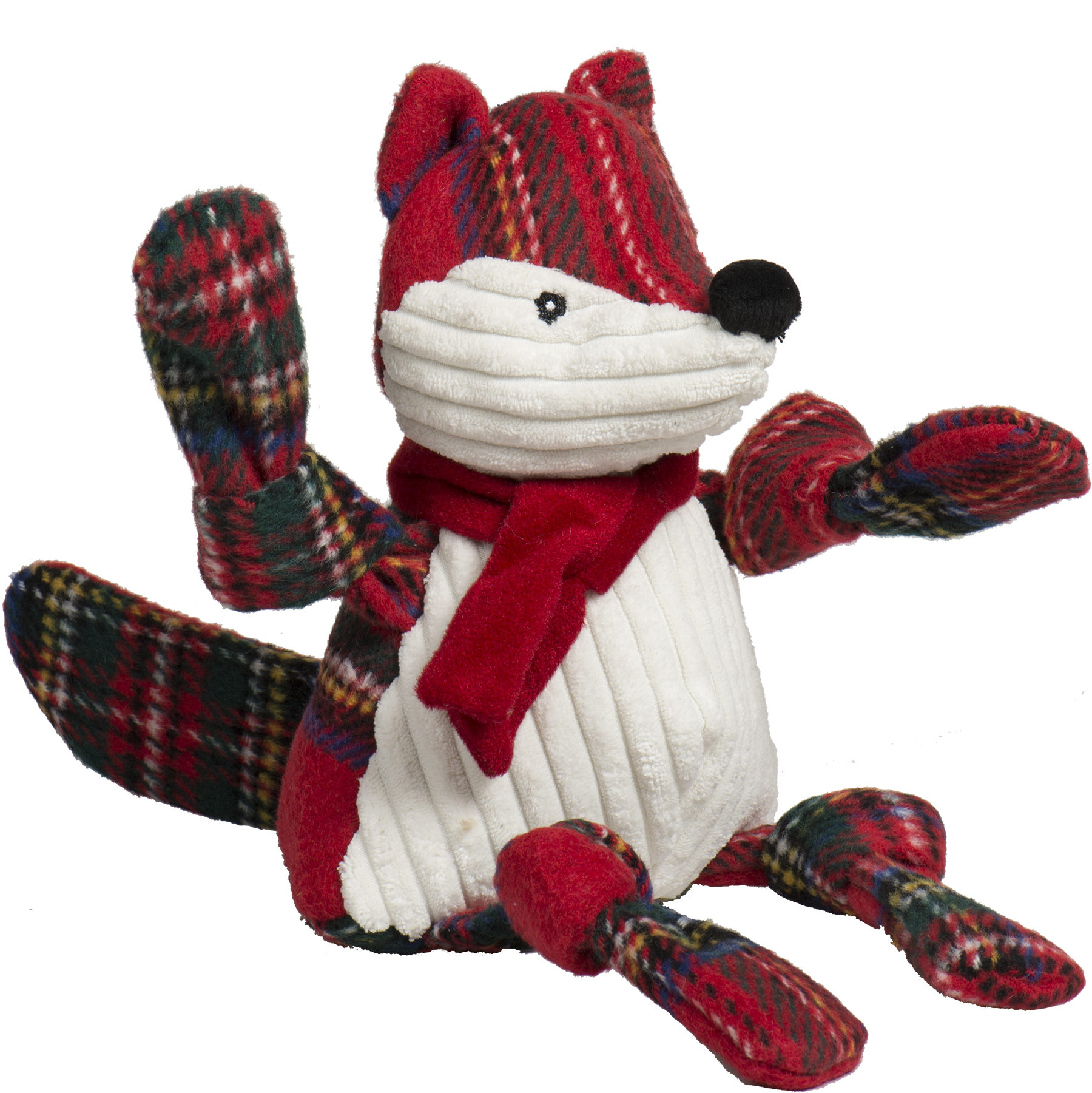 Tartan Tidings Fox Knottie – Durable Holiday Plush Dog Toy Small